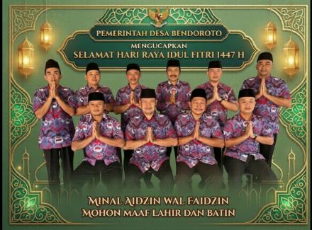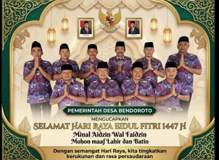 Di hari yang fitri ini, kami segenap jajaran Pemerintah Desa Bendoroto memohon maaf atas segala khilaf baik dalam tutur kata maupun pelayanan.